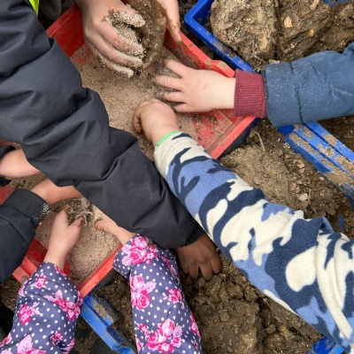 We made bird feeders and hung them around Forest School to feed the birds.
