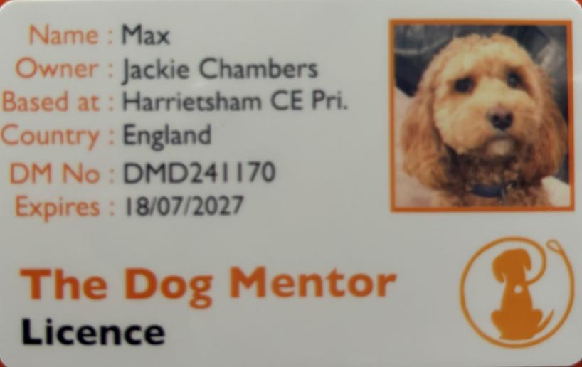 Max is fully licenced to work in schools with The Dog Mentor.
